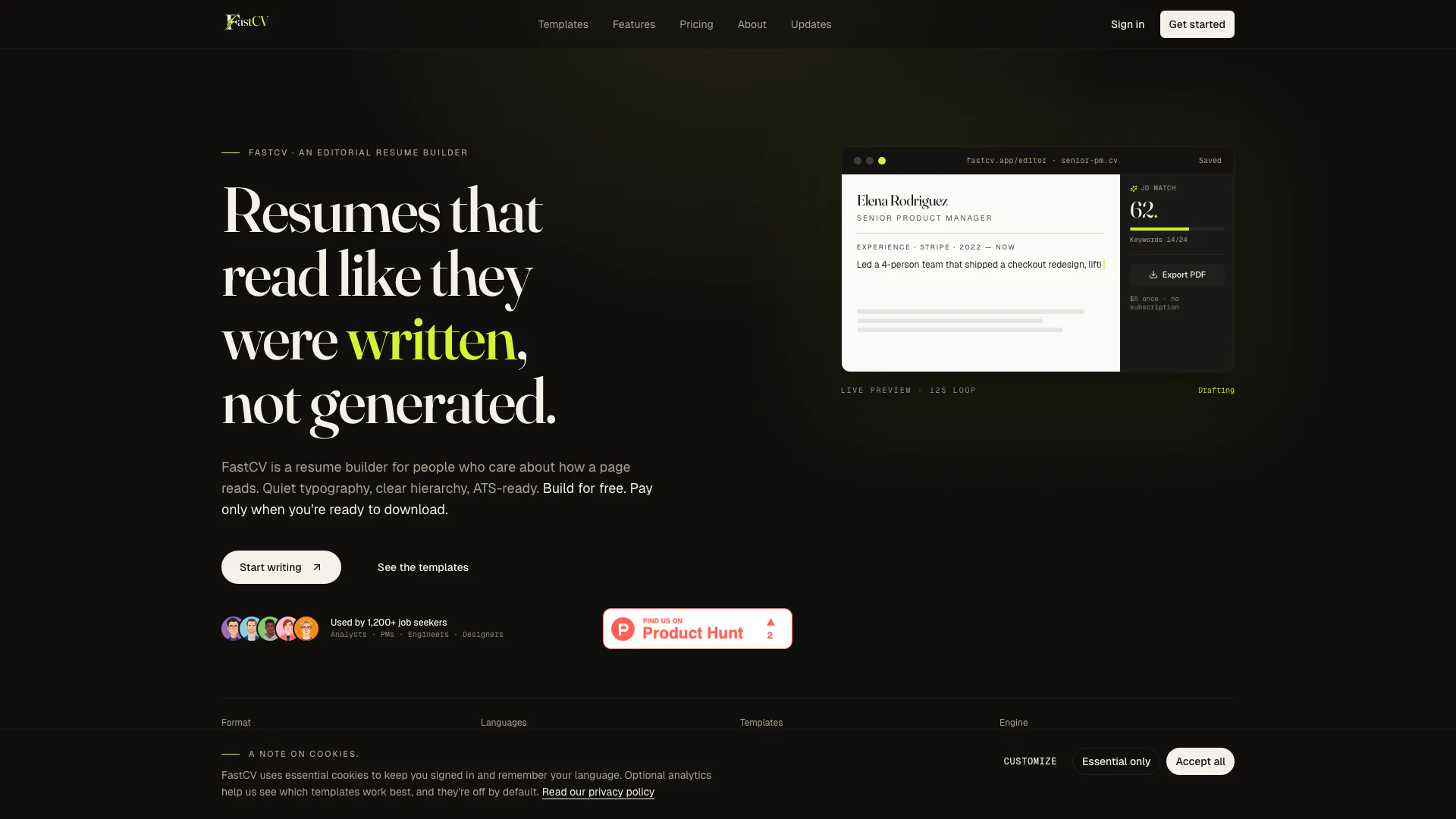 - Preços acessíveis: Os usuários podem baixar um currículo PDF polido por apenas $5, sem necessidade de assinatura, tornando-o uma opção econômica.
