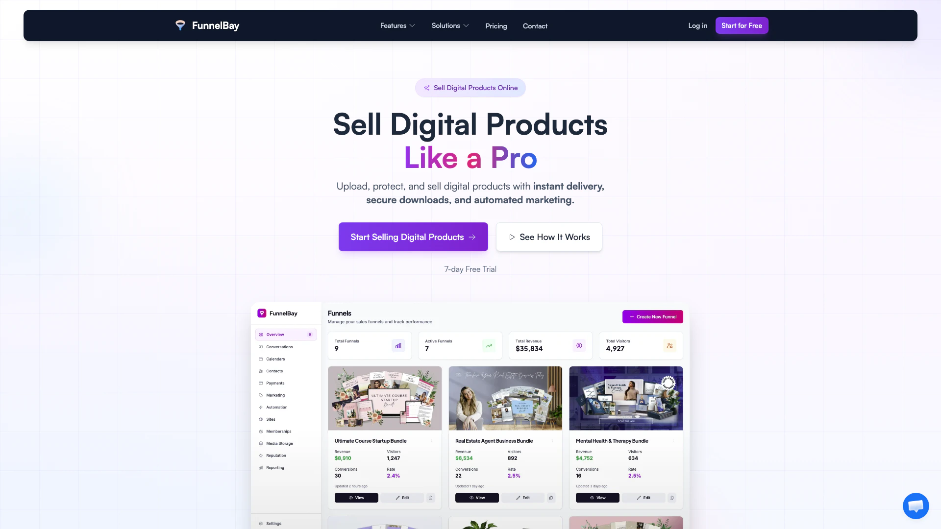 O FunnelBay é uma plataforma tudo-em-um projetada para ajudar os usuários a vender produtos digitais, como eBooks, cursos online, templates e software. Com recursos que permitem entrega instantânea, processamento seguro de pagamentos e marketing automatizado, o FunnelBay simplifica o processo de vendas de produtos digitais. Ele permite que os criadores gerenciem tudo a partir de uma única interface, eliminando a necessidade de várias ferramentas e simplificando o processo de vendas. Ao oferecer um editor intuitivo de arrastar e soltar e poderosas automações de marketing, o FunnelBay capacita os criadores a monetizar efetivamente seu conteúdo digital.