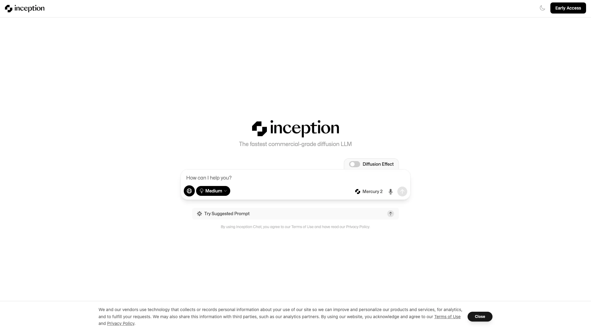 O Inception Chat é um LLM de difusão de nível comercial construído com o Open WebUI que permite aos usuários interagir com tecnologia de IA avançada.
