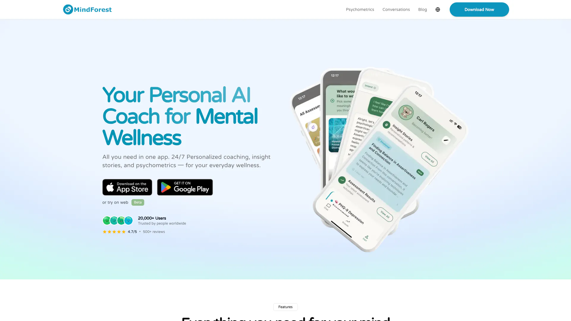 - Baixe o aplicativo Mindforestai na App Store ou Google Play.