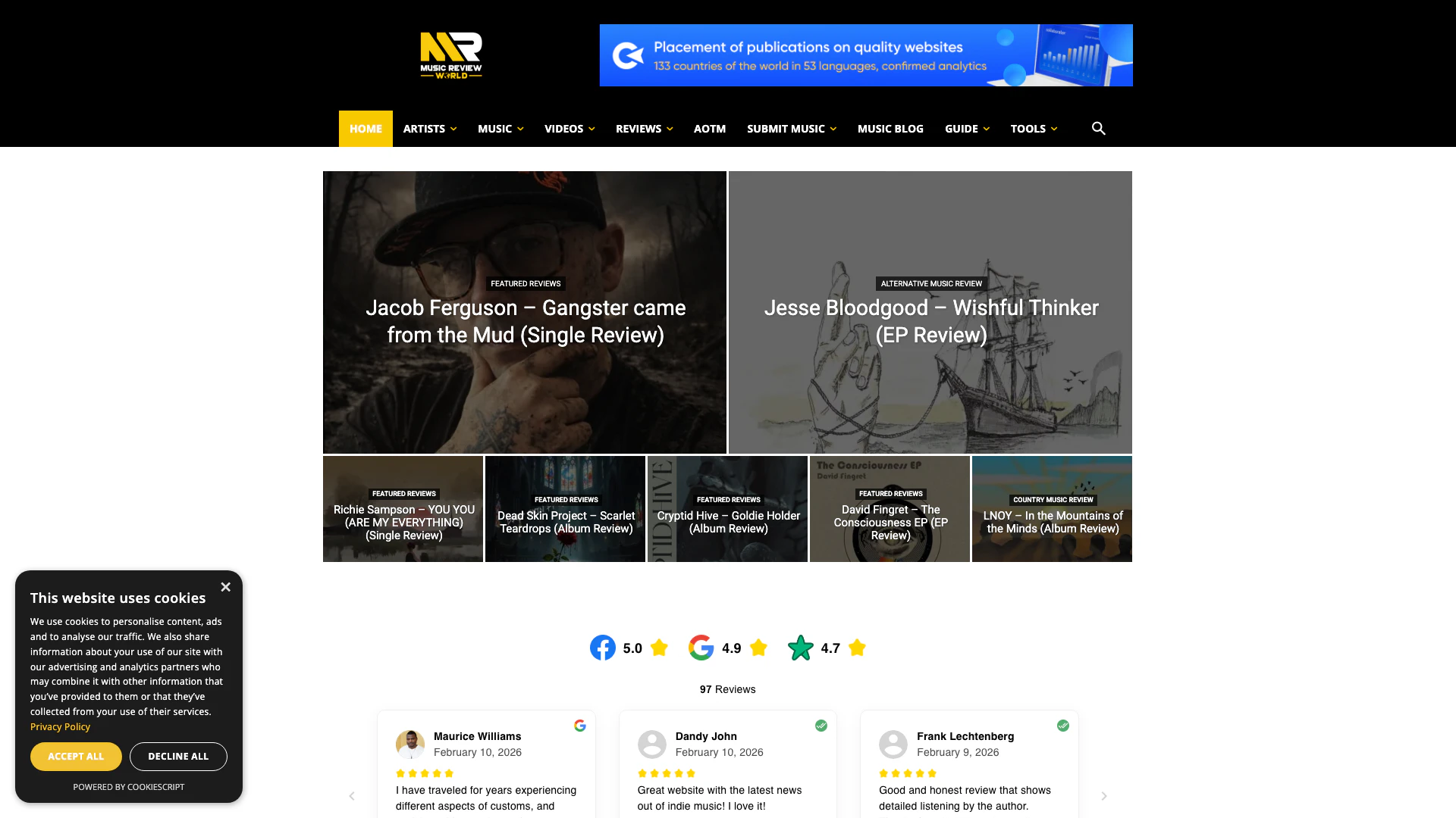 - Visite o site do Music Review World em https://musicreviewworld.com/.