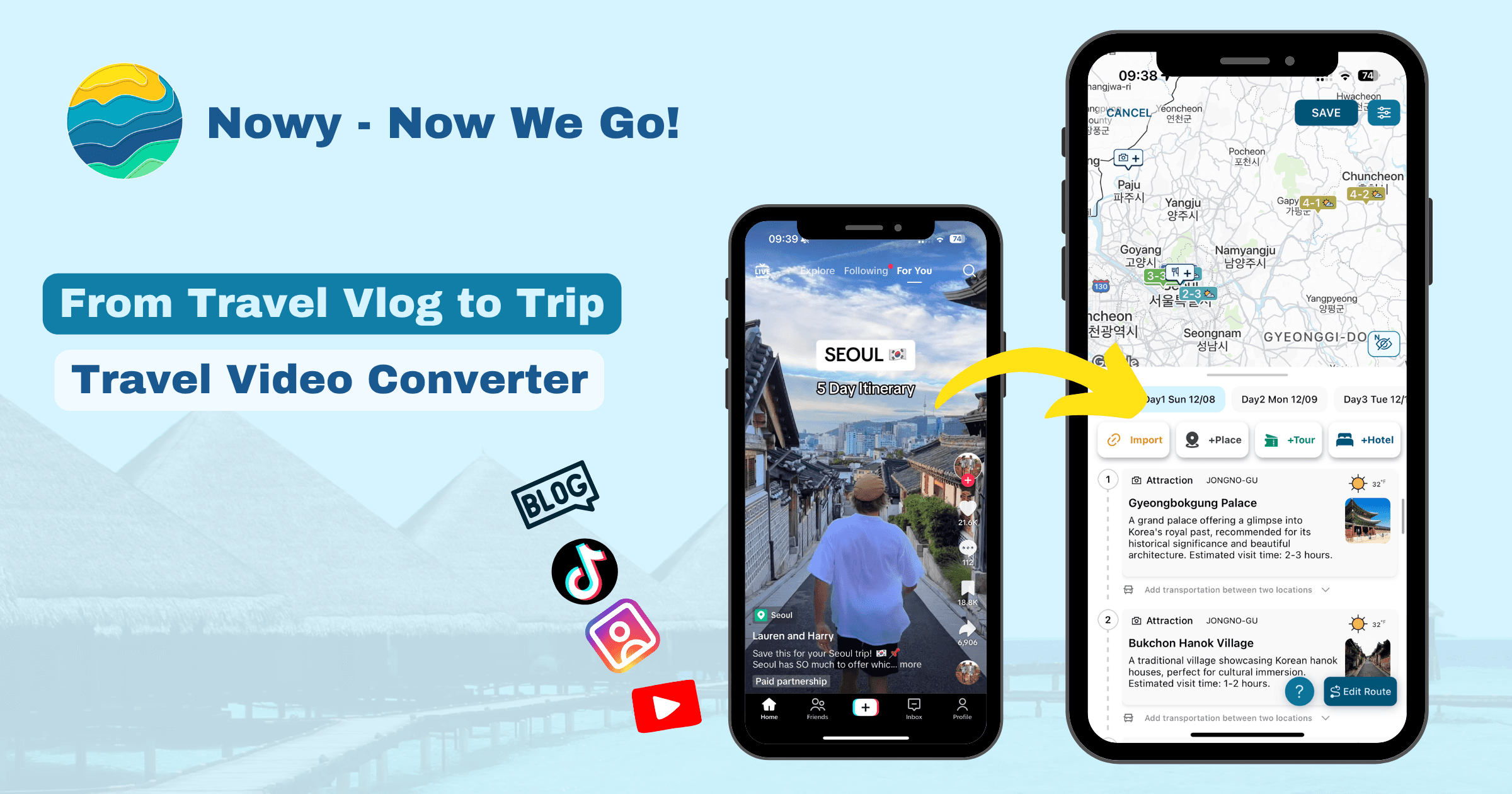 Nowy é um aplicativo de planejamento de viagens com inteligência artificial que ajuda os usuários a transformar seus vlogs de viagem em itinerários perfeitos, tornando o planejamento de viagens simples e eficiente.