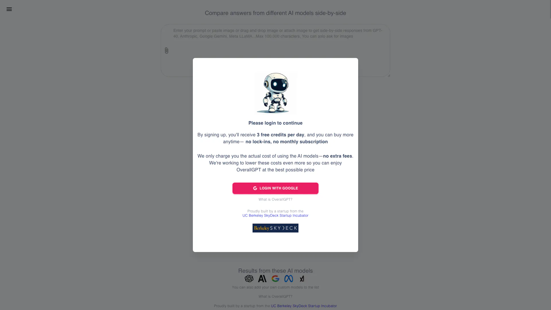 - Cadastre-se para uma conta no site do OverallGPT para receber 3 créditos gratuitos diariamente.
