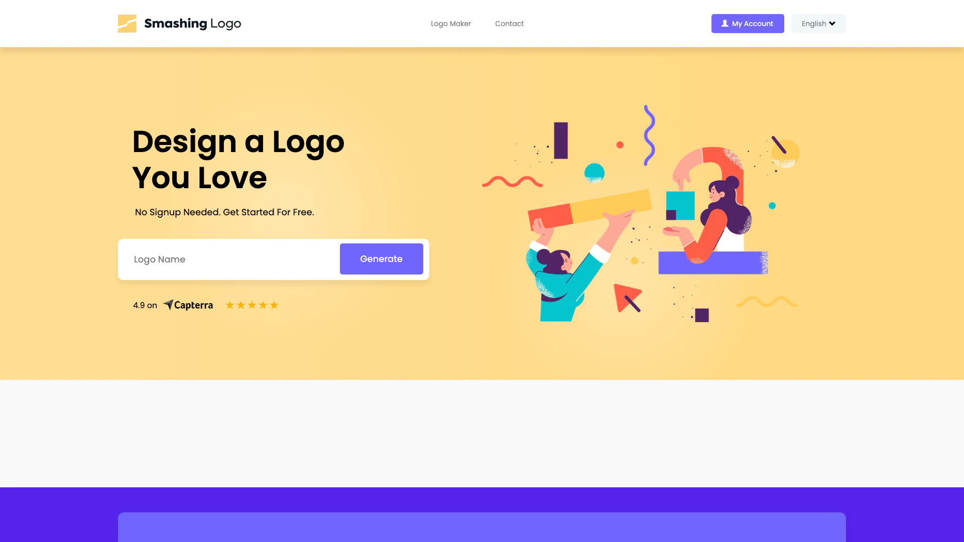 - Visite o site do Smashinglogo e clique em 'Gerar' para começar a projetar seu logotipo.
