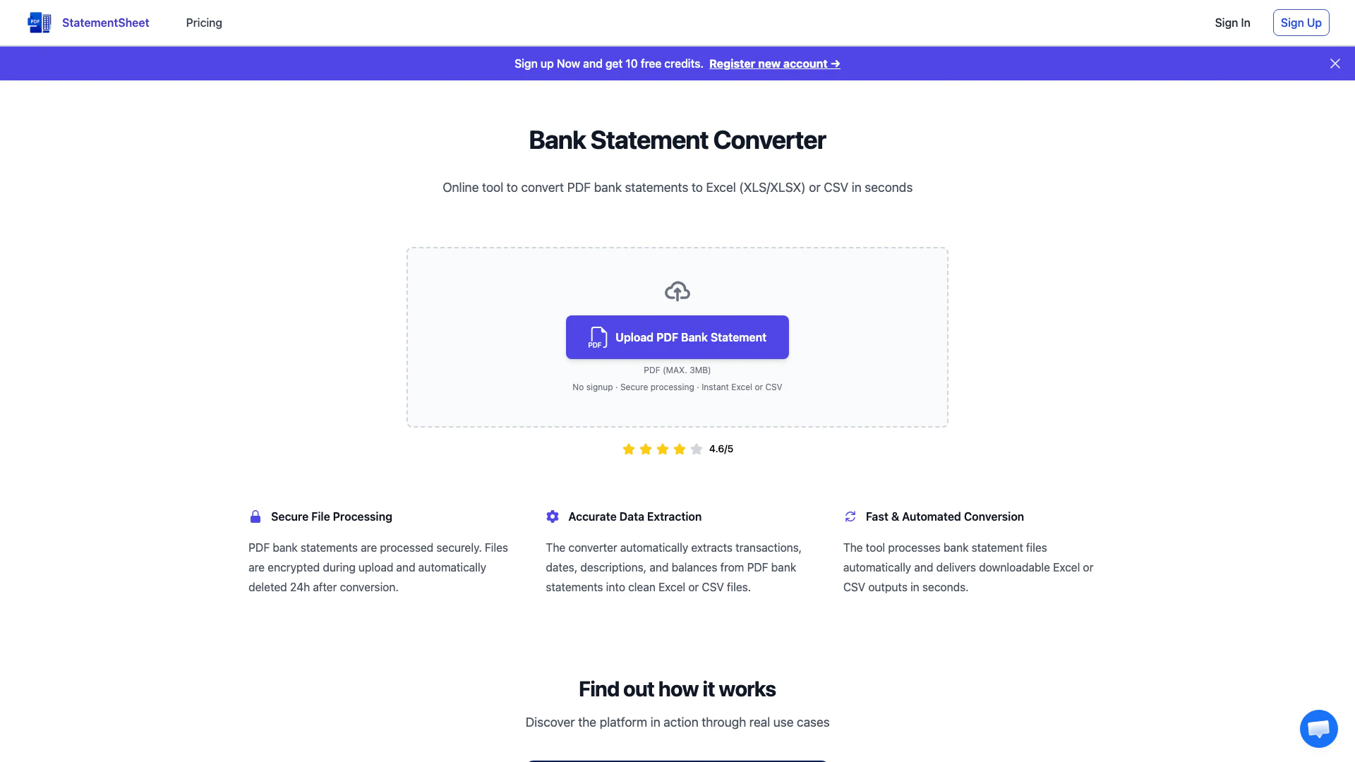 - Visite o site do StatementSheet e localize a ferramenta de conversão de extratos bancários.