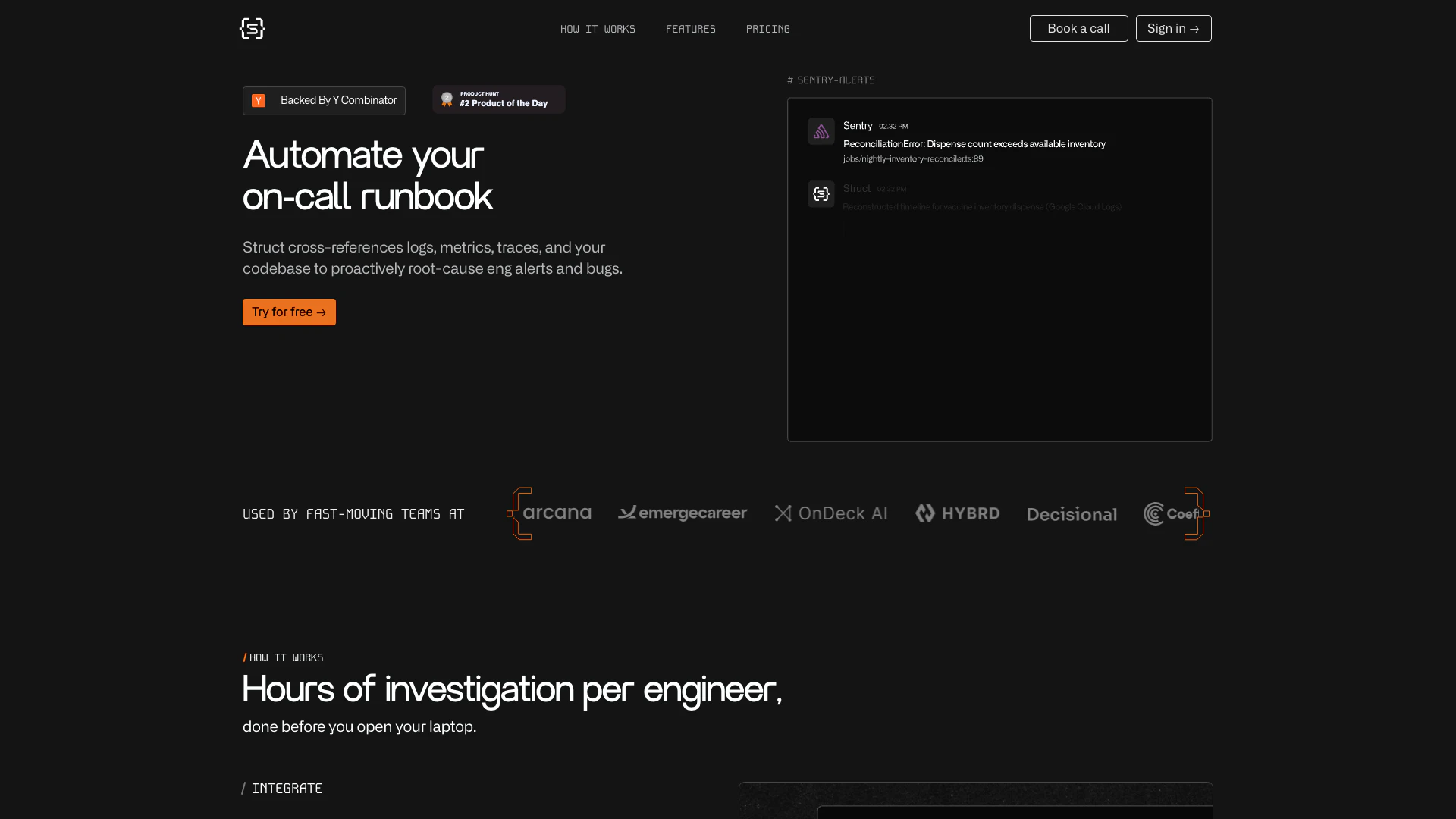 - Integre suas ferramentas: Conecte o Structai com suas plataformas de observabilidade e alerta existentes, como Sentry e Datadog, além de ferramentas de trabalho como Slack e GitHub.
