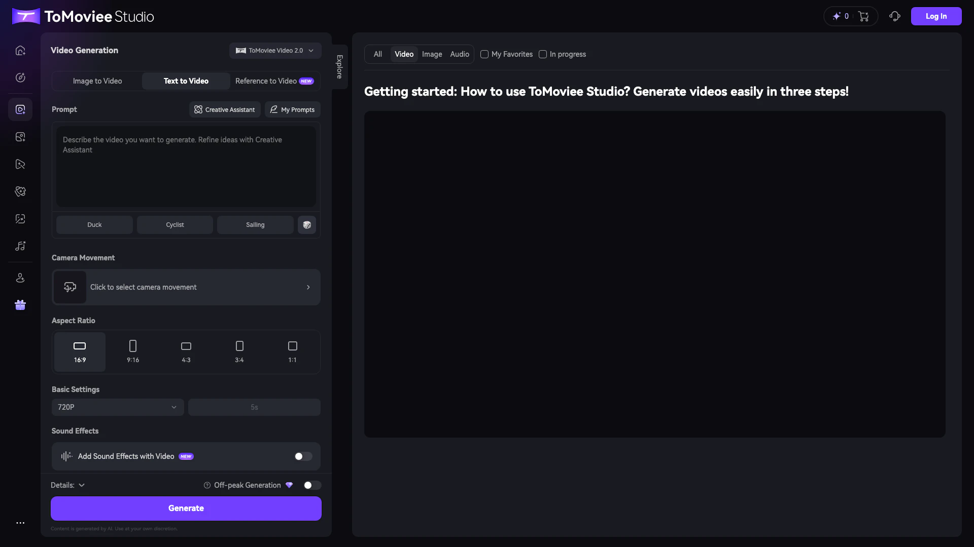 Tomovieeai é uma ferramenta que permite aos usuários gerar vídeos, imagens e áudios de qualidade de estúdio em um único espaço de trabalho de IA.