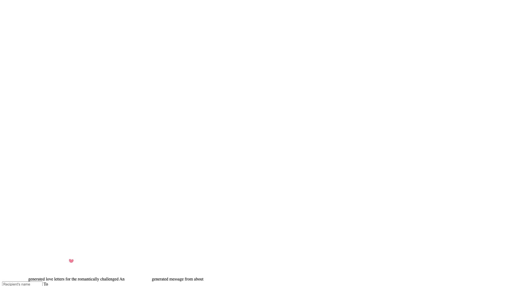 The AI Love Letter Generator is a creative tool designed to help users craft heartfelt and personalized love letters. By utilizing advanced AI technology, it generates love letters infused with genuine human emotions, making it easier for individuals to express their feelings to their loved ones. This tool is perfect for anyone looking to convey affection in a unique and meaningful way, whether for special occasions like anniversaries, Valentine's Day, or simply to brighten someone's day.