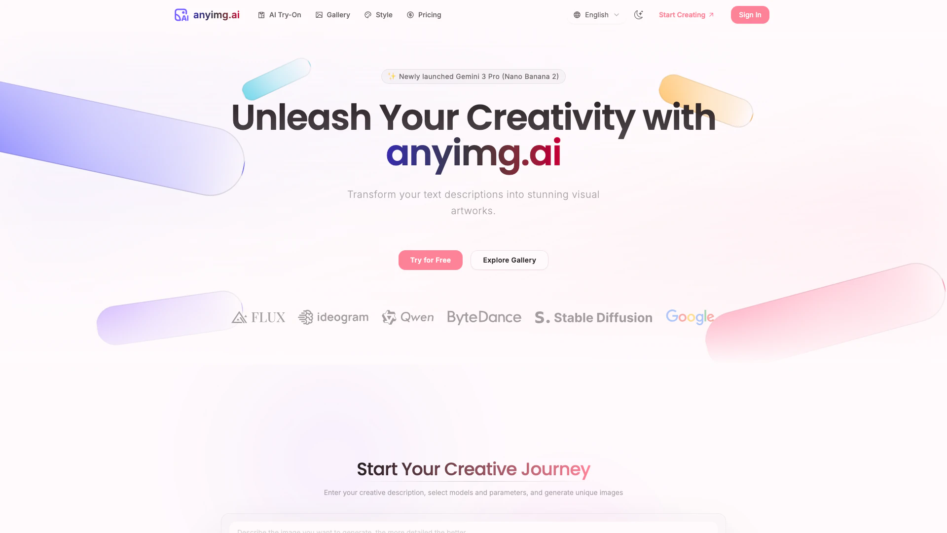 - High-Quality Image Generation: Anyimgai uses advanced AI models to generate beautiful, high-quality images from simple text descriptions, making it suitable for various creative projects.