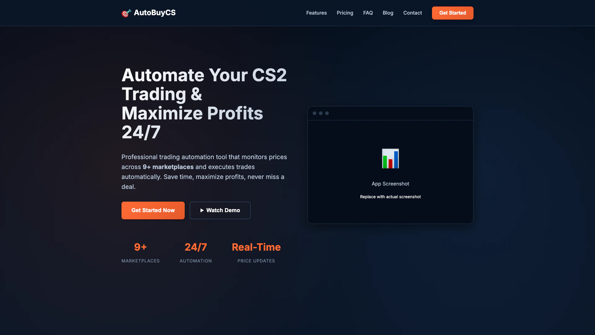 AutoBuyCS is a professional trading automation[1] tool designed specifically for CS2[2] trading. It enables users to monitor prices across more than 9 marketplaces and automates trading with features such as instant buy[4] and auto-buy[5]. This tool helps traders save time, maximize profits, and ensure they never miss a deal by providing real-time price updates and continuous monitoring of the trading environment.