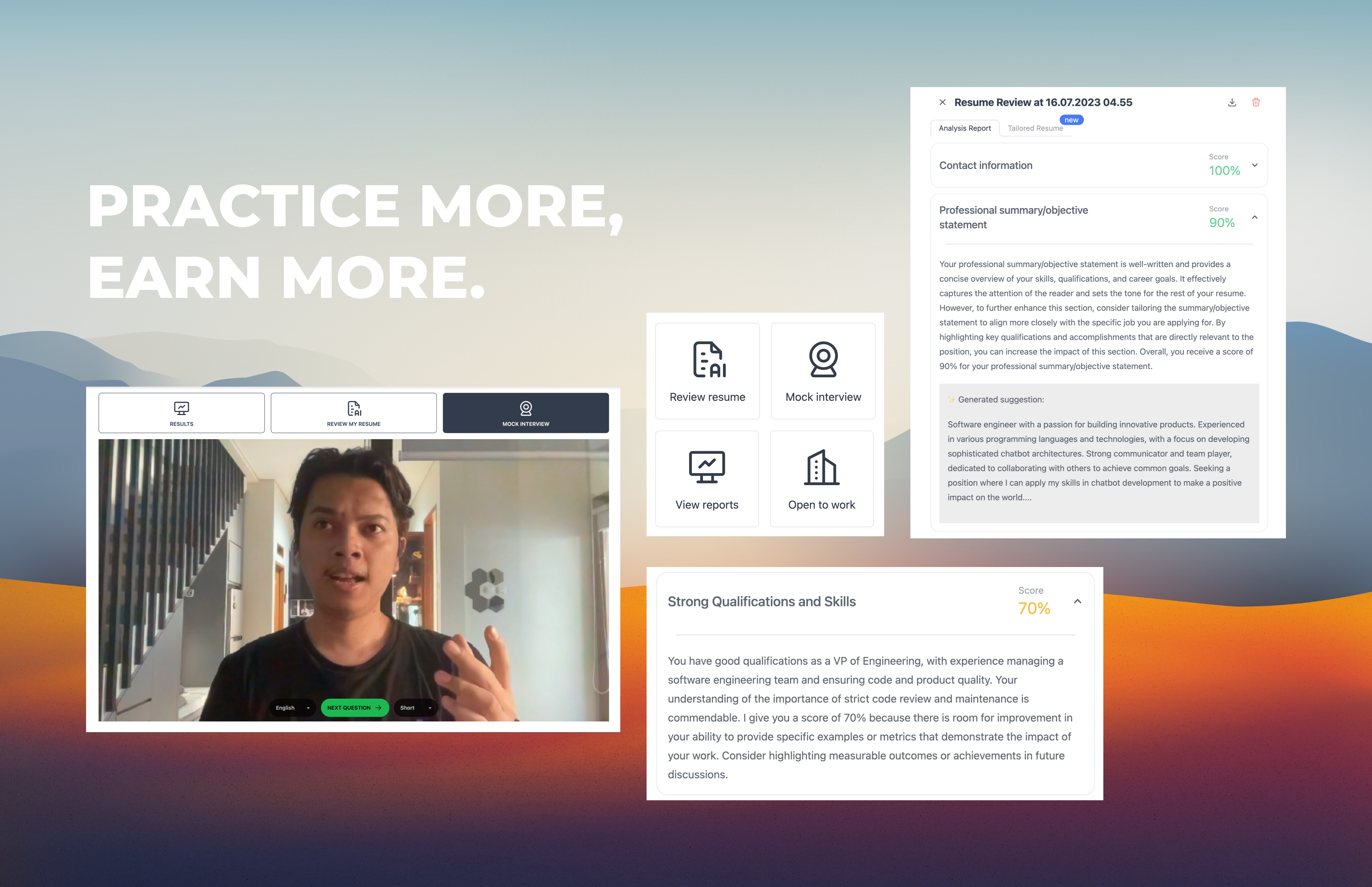 Users can upload their resumes to the platform, have them analyzed by the AI engine, and receive detailed improvement suggestions. Additionally, they can conduct mock interviews to enhance their interview performance.