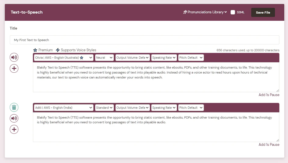 - Extensive Voice Library: Blakify offers over 700 voices in 70 languages and accents, providing a wide range of options for text-to-speech applications.
