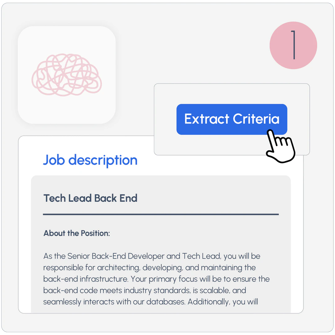 - Extract Criteria: The AI analyzes the job description to extract key criteria for screening candidates, recommending mandatory, preferred, or neutral criteria.