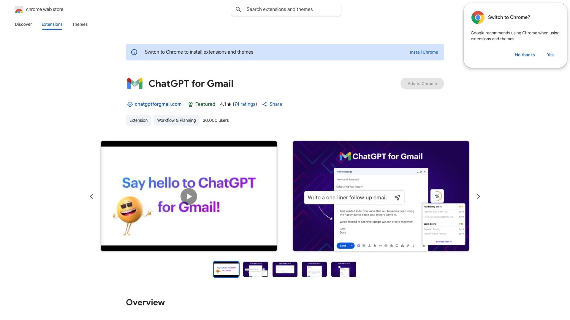 Chatgpt For Gmail is a tool designed to integrate AI capabilities into Gmail, enhancing the email experience with intelligent suggestions and automated responses.