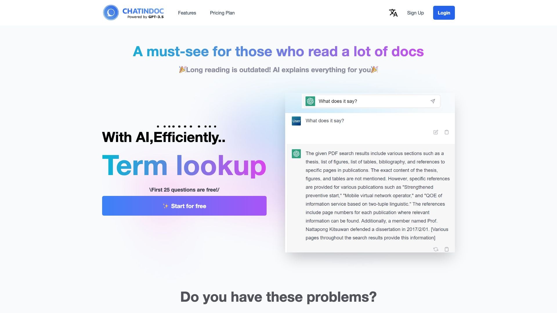 - Supports Multiple File Formats: ChatInDoc supports various file formats including PDF, Office (Word, Excel, PPT), and text, making it versatile for different document types.
