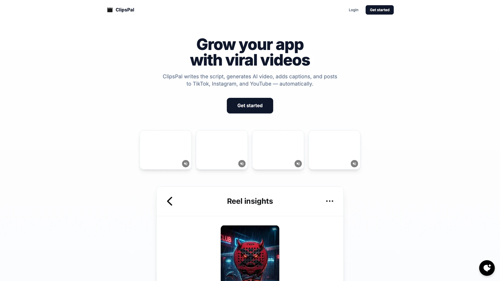 ClipsPal writes the script, generates a talking-head AI video with your chosen character and voice, adds animated captions, and posts it to TikTok, Instagram Reels, or YouTube Shorts — automatically.