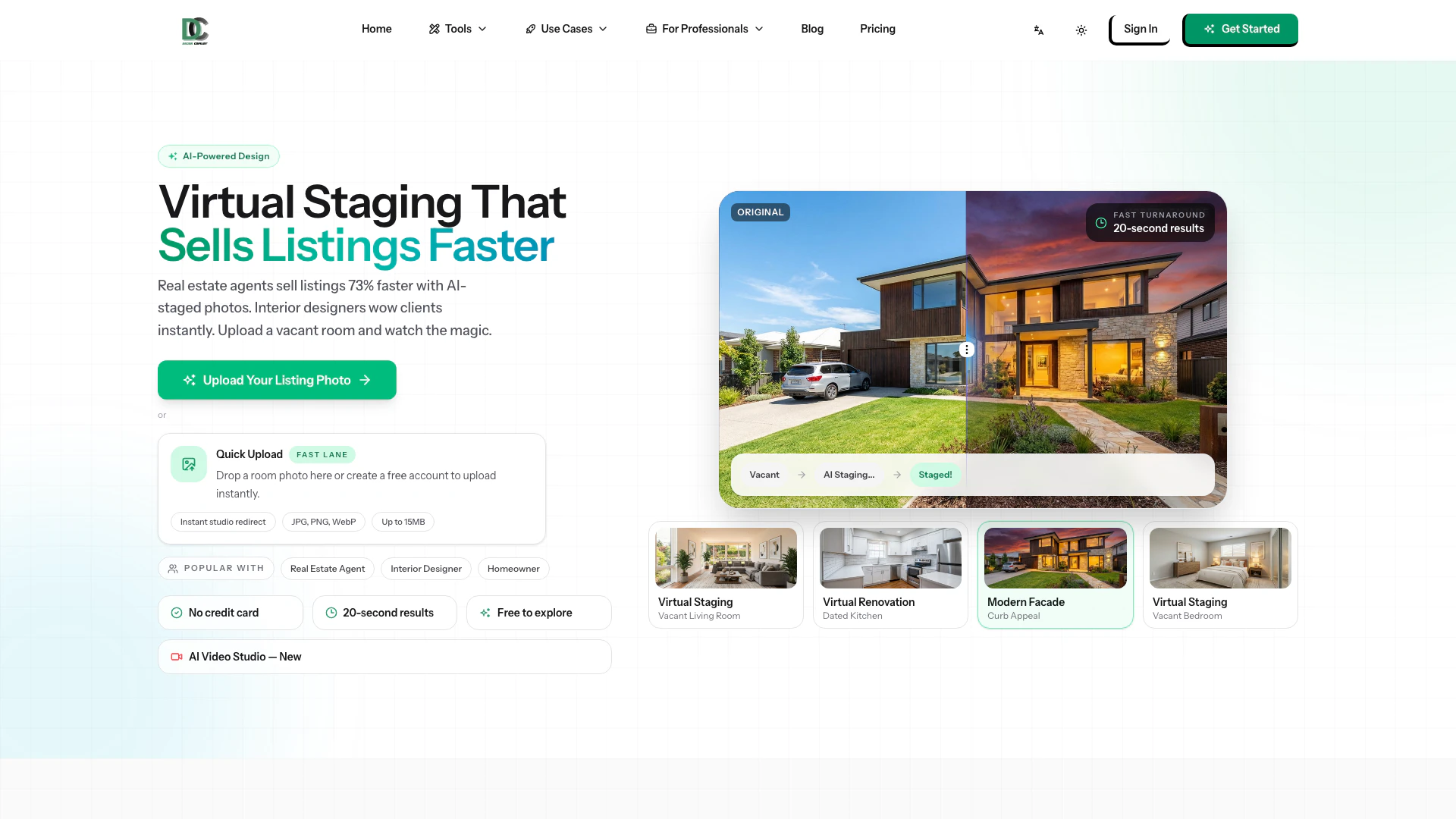 - Fast Transformation: Transform any room photo in just 20 seconds, allowing for quick visualizations and decision-making.