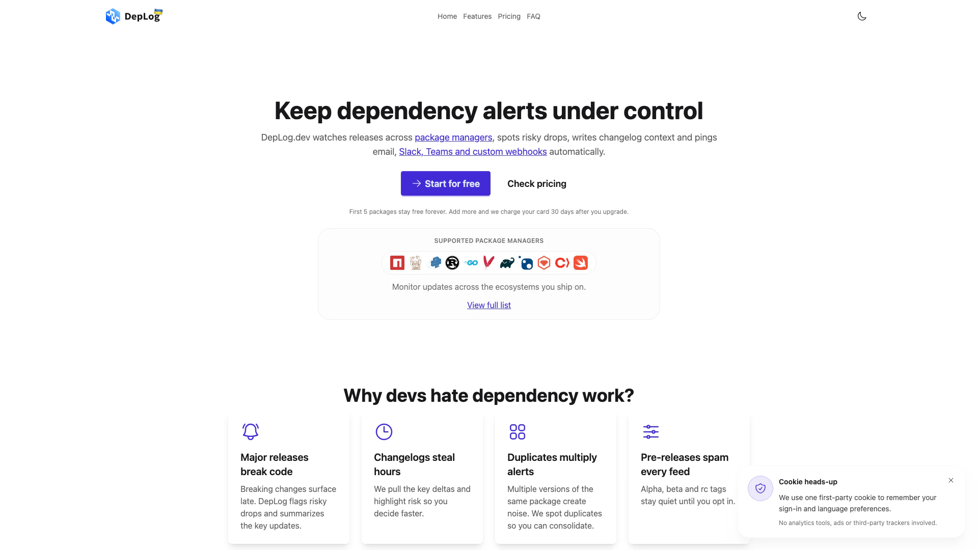 - Comprehensive Dependency Monitoring: DepLog tracks releases across multiple package managers, ensuring developers stay informed about updates and breaking changes.