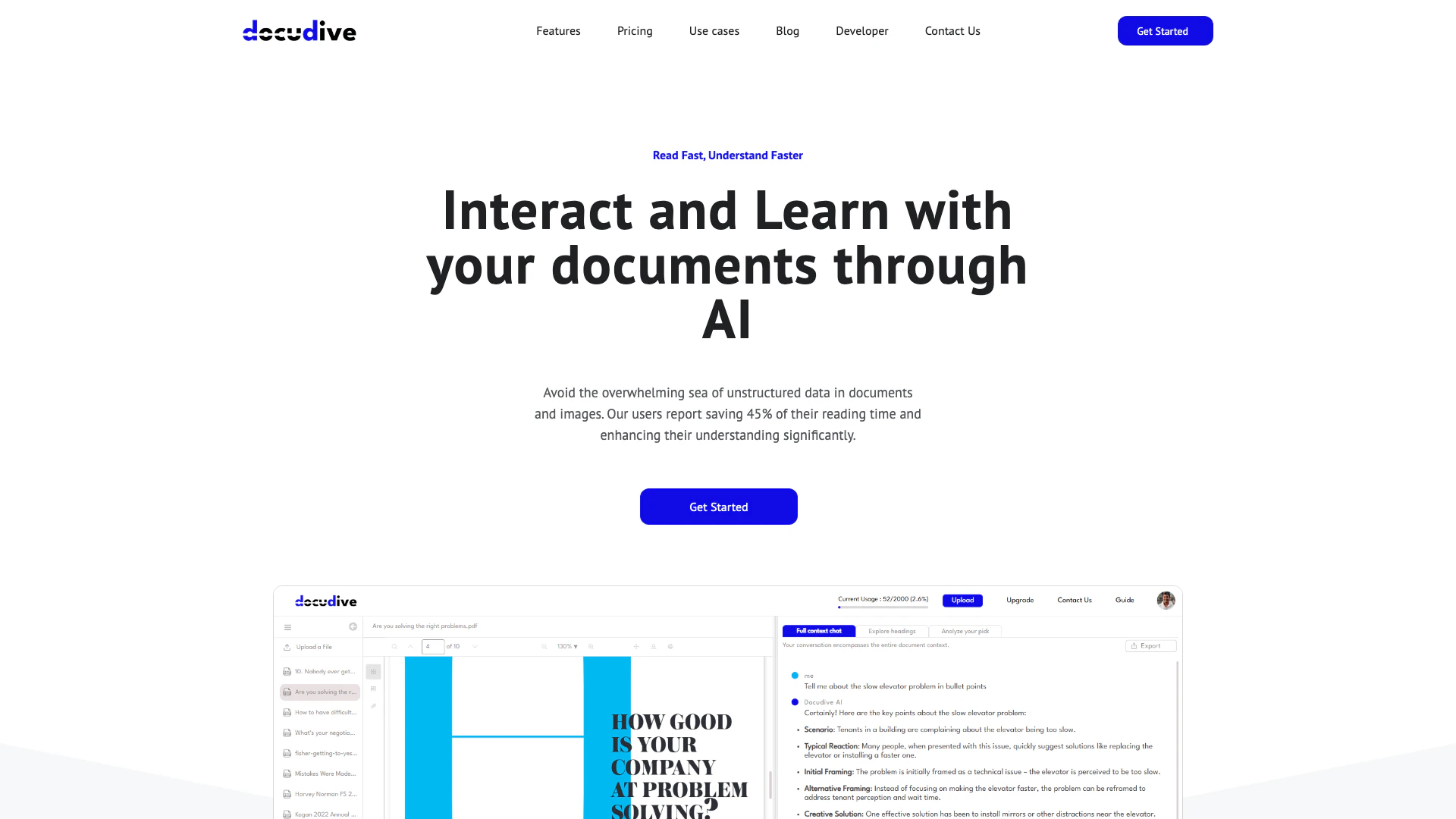 - Advanced Document Understanding: Docudiveai utilizes AI to enhance document comprehension, allowing users to engage with complex PDFs through interactive dialogues.