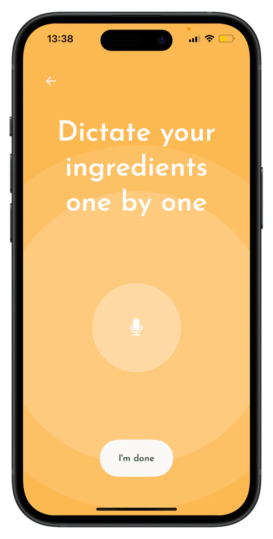 - Voice Dictation: Users can dictate their ingredients, making the input process faster and more intuitive.