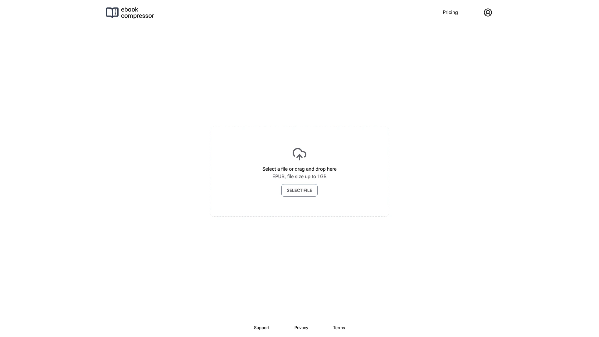 - Click on the 'SELECT FILE' button to upload your EPUB file, or simply drag and drop your file into the designated area.