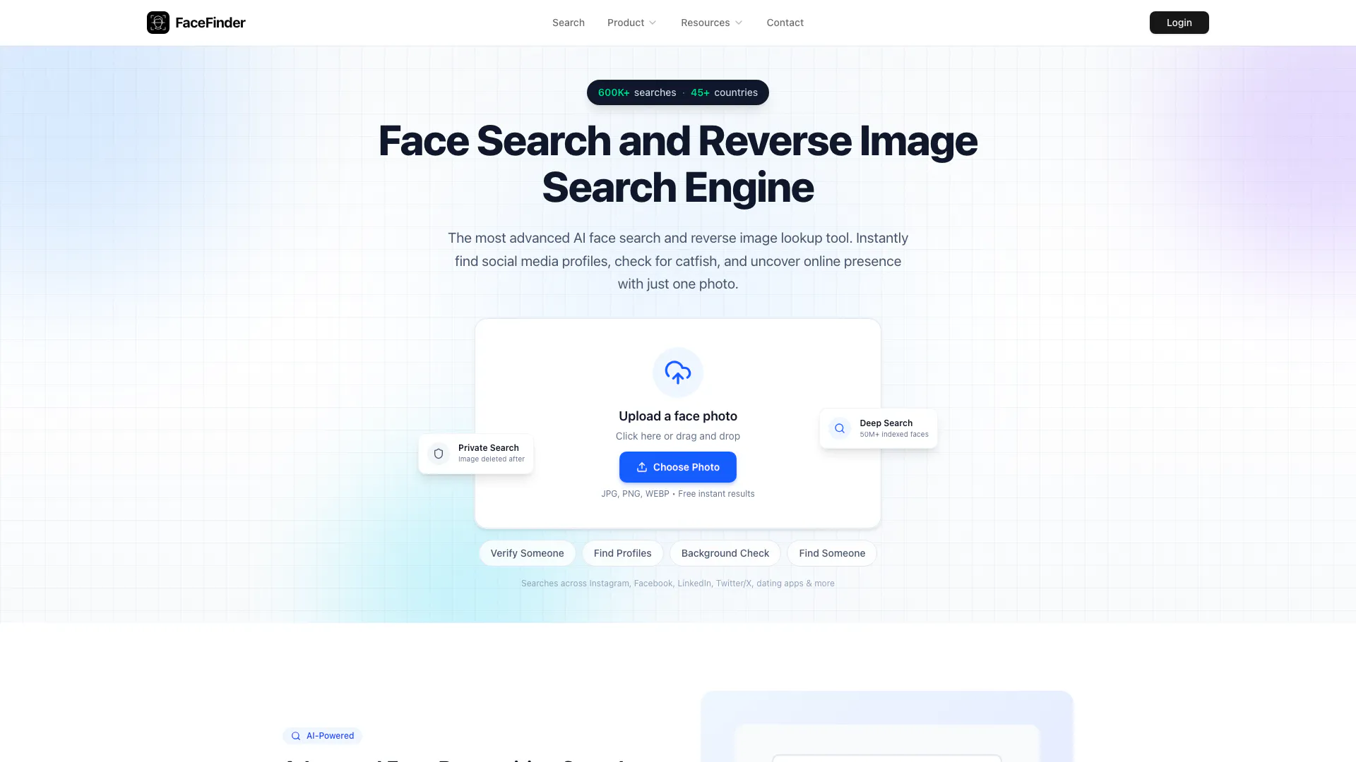 Quickly find anyone online using just a photo.