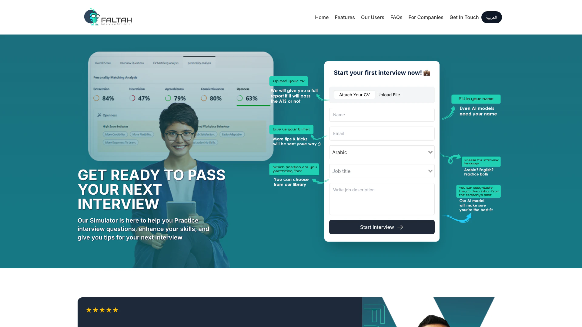 - AI-Powered Interview Simulation: Faltahai offers an AI-driven interview simulation that helps users practice job-related questions and receive real-time feedback, enhancing their interview skills.