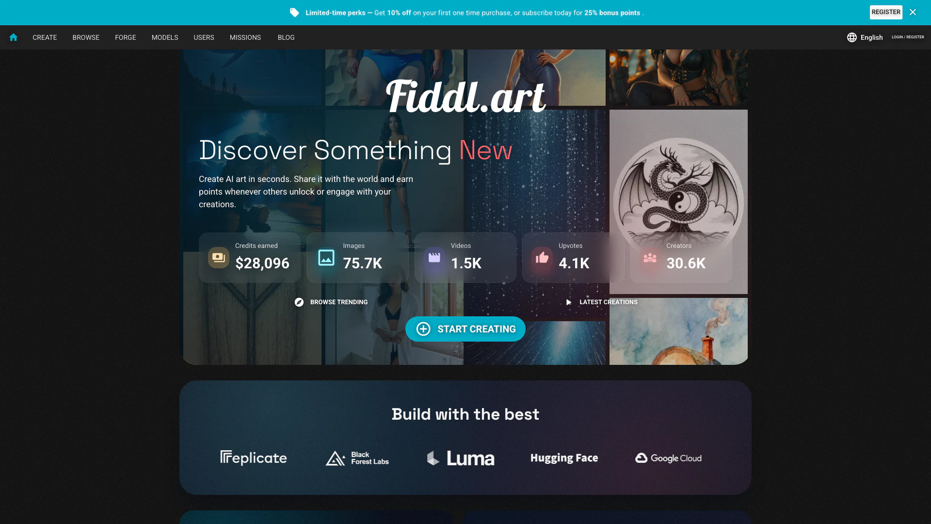 Fiddl.art is a creative platform where you can generate AI art, remix prompts, and publish your work for others to explore, unlock, and reward with points. You can create high-quality images and videos with leading models, train custom models on your own datasets using Forge, and share creations publicly to earn points when others engage.