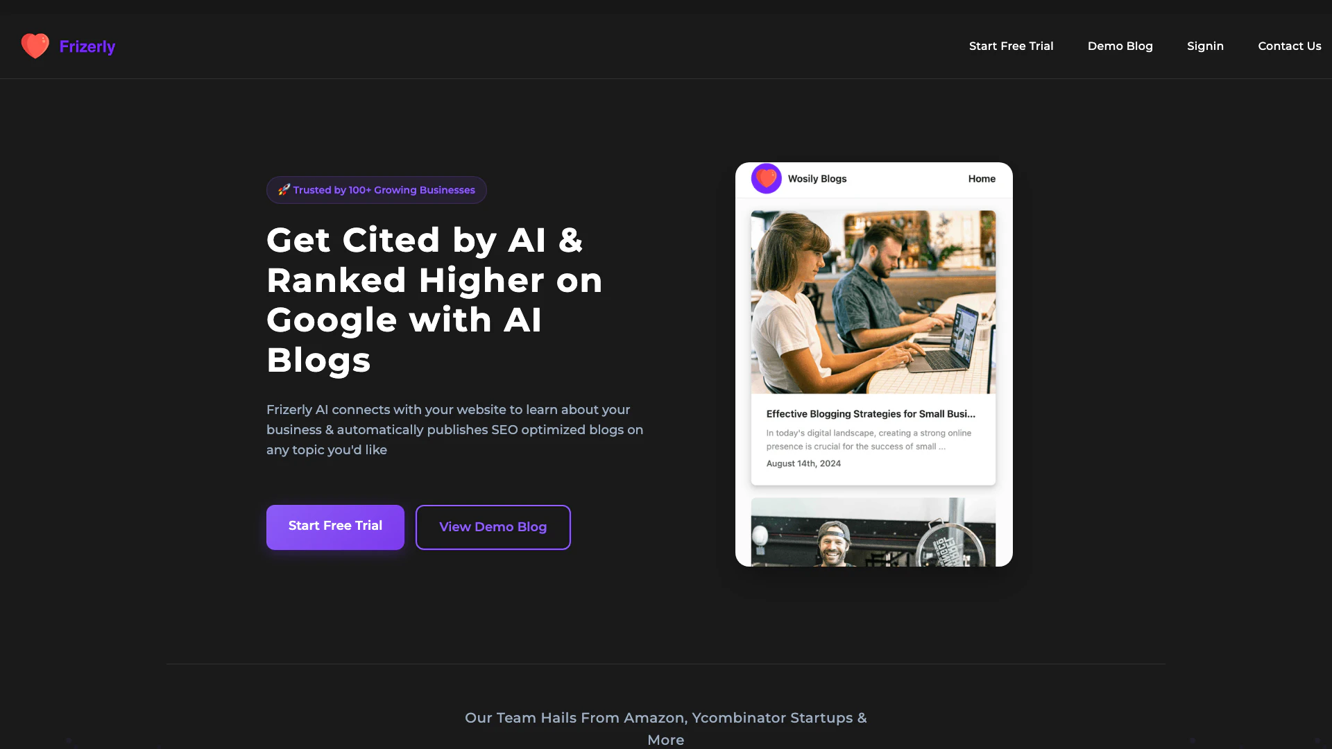 Frizerly is an innovative AI-powered[1] tool designed to connect with your website and automate the process of publishing SEO-optimized blogs. By learning about your business, Frizerly generates content tailored to your specific needs, ensuring that you have fresh, relevant blog posts published weekly. This not only enhances your online presence but also helps in improving your website's SEO ranking, making it easier for potential customers to discover your business on search engines.