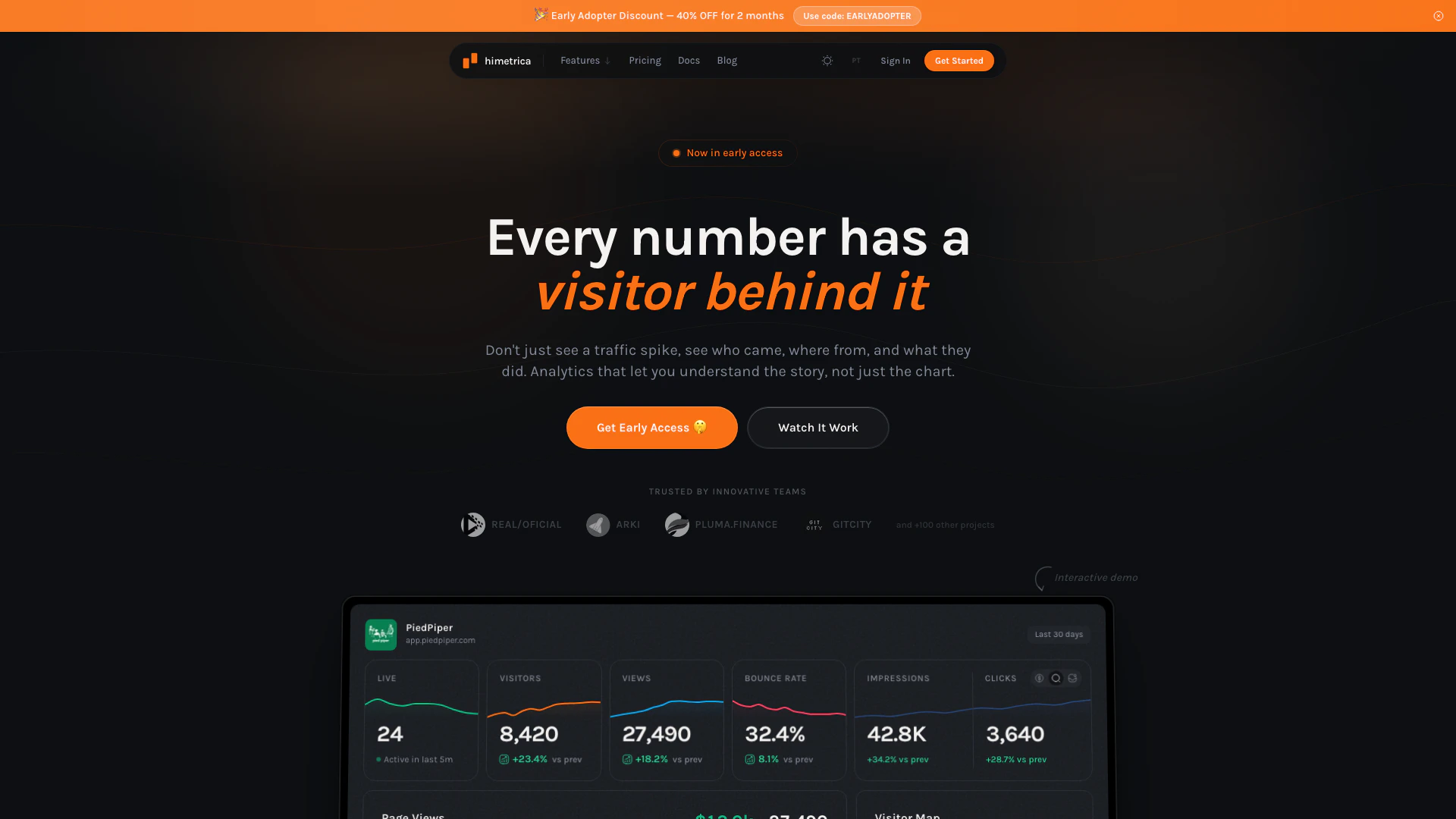 - Comprehensive Visitor Insights: Himetrica provides detailed analytics that allow users to see not just traffic spikes but also who visited, their source, and their actions, offering a deeper understanding of user behavior.