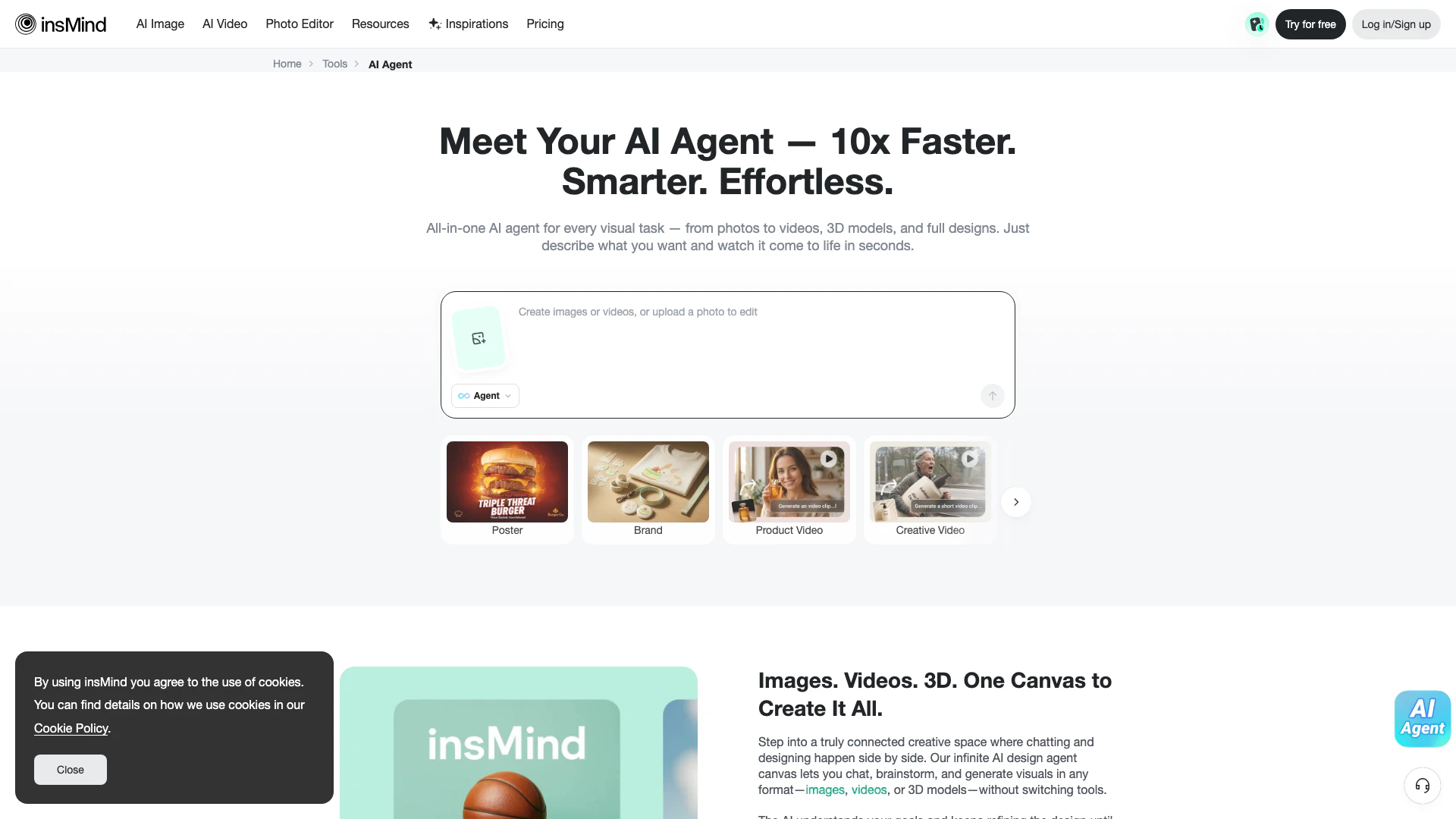 - All-in-One Creative Tool: The AI agent handles various visual tasks, including images, videos, and 3D models, in one integrated platform.