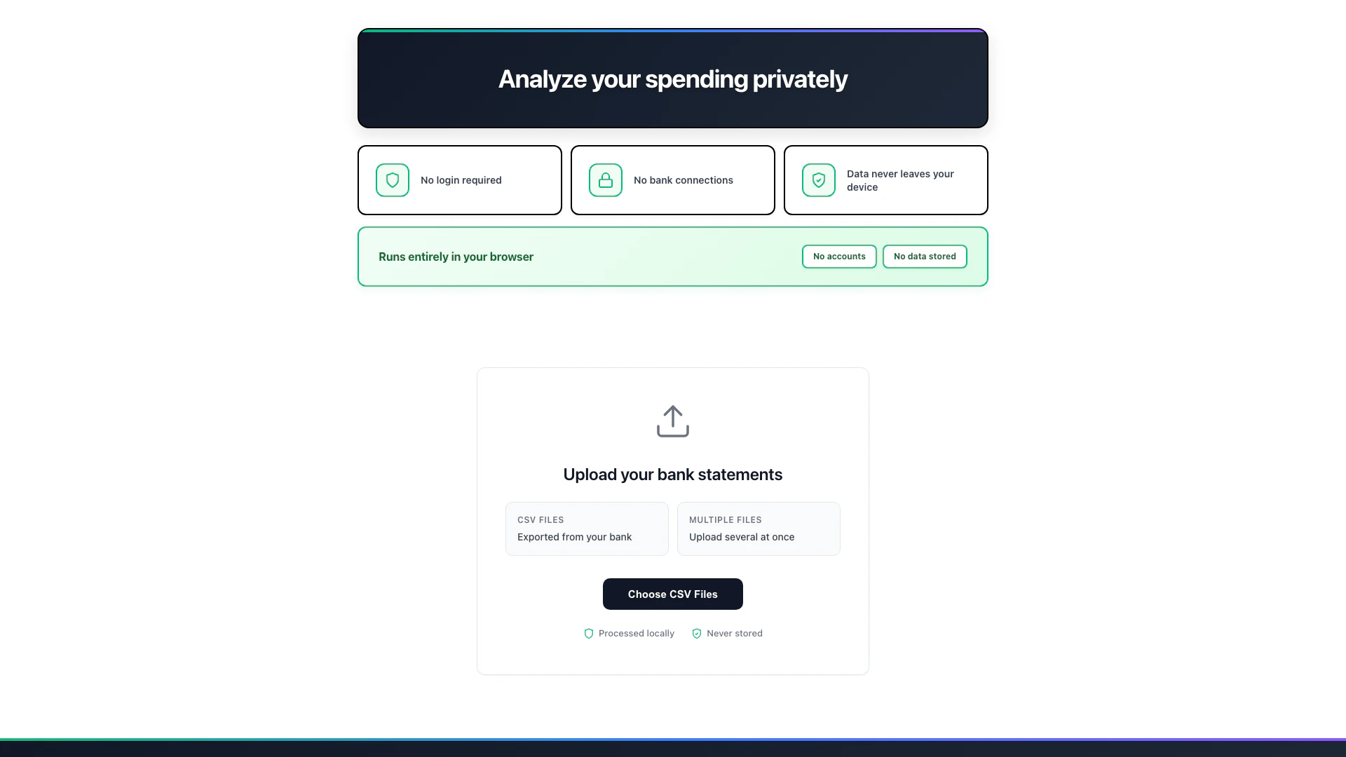 - No Account Required[2]: Users can analyze their spending without creating an account or logging in.