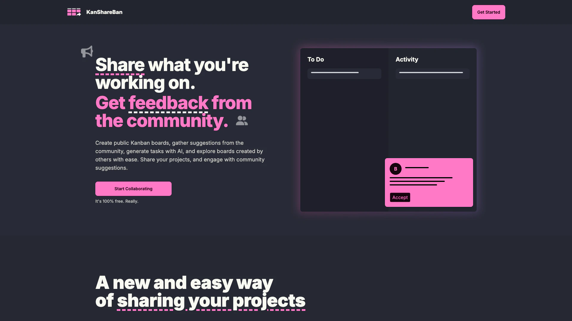 KanShareBan is ideal for project managers, developers, designers, and anyone involved in creative work who seeks an interactive way to manage their projects. It caters to individuals and teams looking for a collaborative platform to share ideas, gather feedback, and enhance their project planning process. Whether you are a freelancer, a part of a startup, or a member of a larger organization, KanShareBan provides the tools necessary to facilitate collaboration and improve productivity.