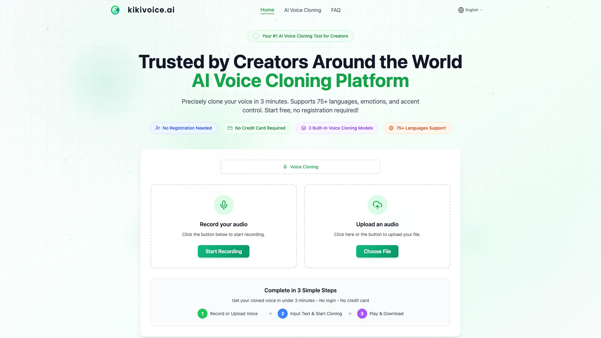 - Multiple Cloning Models: KikiVoice offers three distinct voice cloning models (Core, Pro, Multilingual) to cater to different needs, from quick cloning to professional-grade outputs.