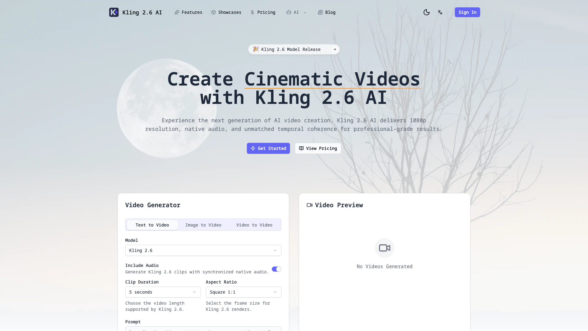 - High-Quality Video Production: Kling 2.6 AI produces cinematic 1080p videos with advanced motion logic and native audio, ensuring professional-grade results.