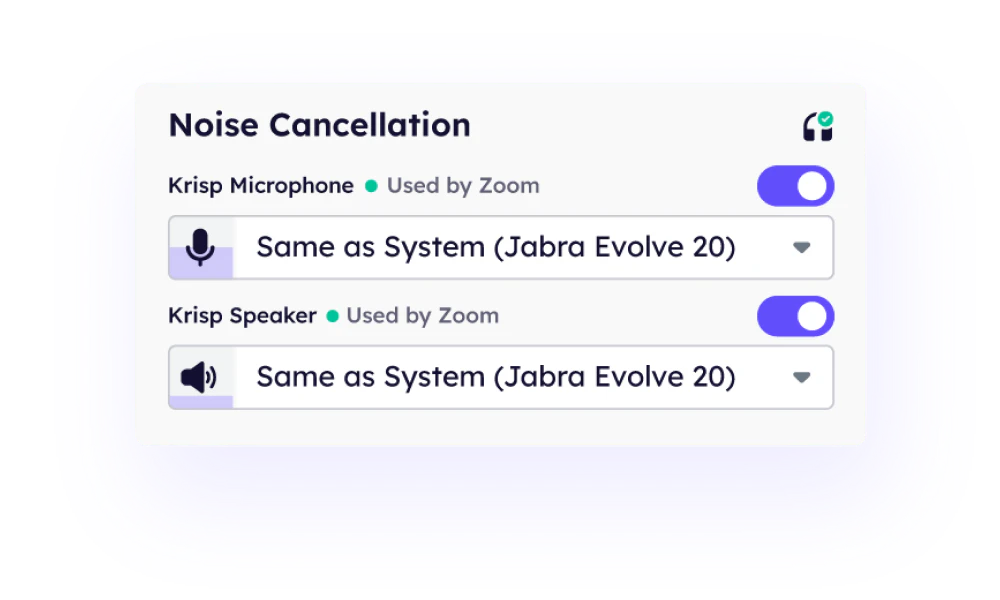 - Configure the app by selecting Krisp Speaker and Krisp Microphone in your communication application. Toggle the Note Taker feature ON in the Krispai app.