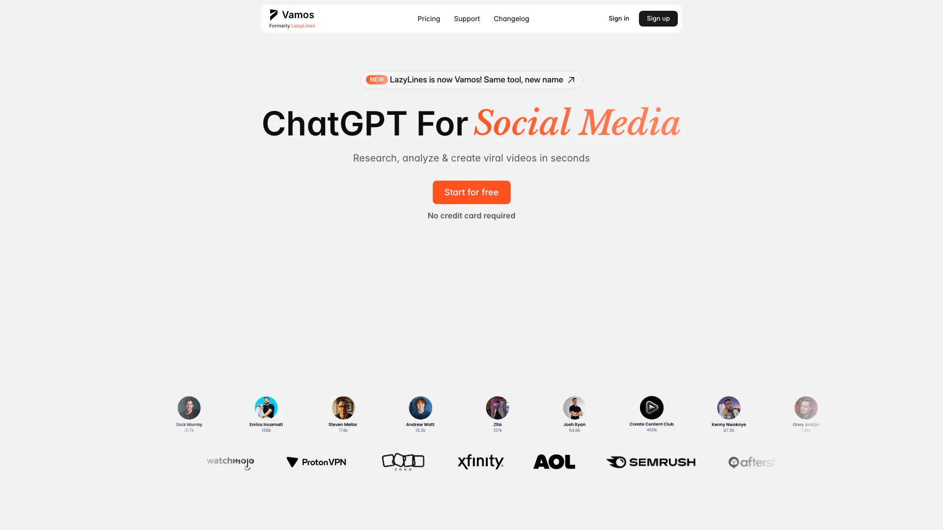 Lazylinesai, now known as Vamos, is an innovative AI tool designed specifically for social media content creation. It leverages the capabilities of ChatGPT to help users research, analyze, and create engaging content quickly. The platform aims to simplify the process of generating viral videos, scripts, and social media posts, making it an essential tool for content creators and marketers looking to enhance their online presence.