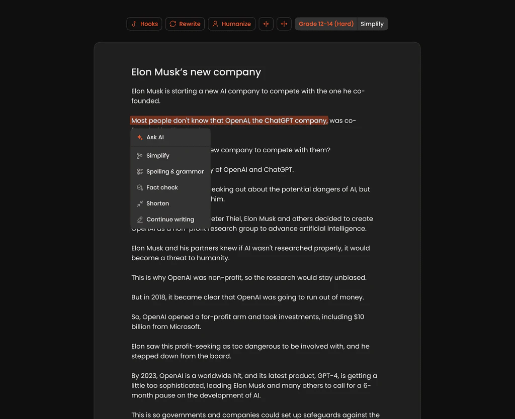 - Utilize the AI suggestions to refine your content in real-time.