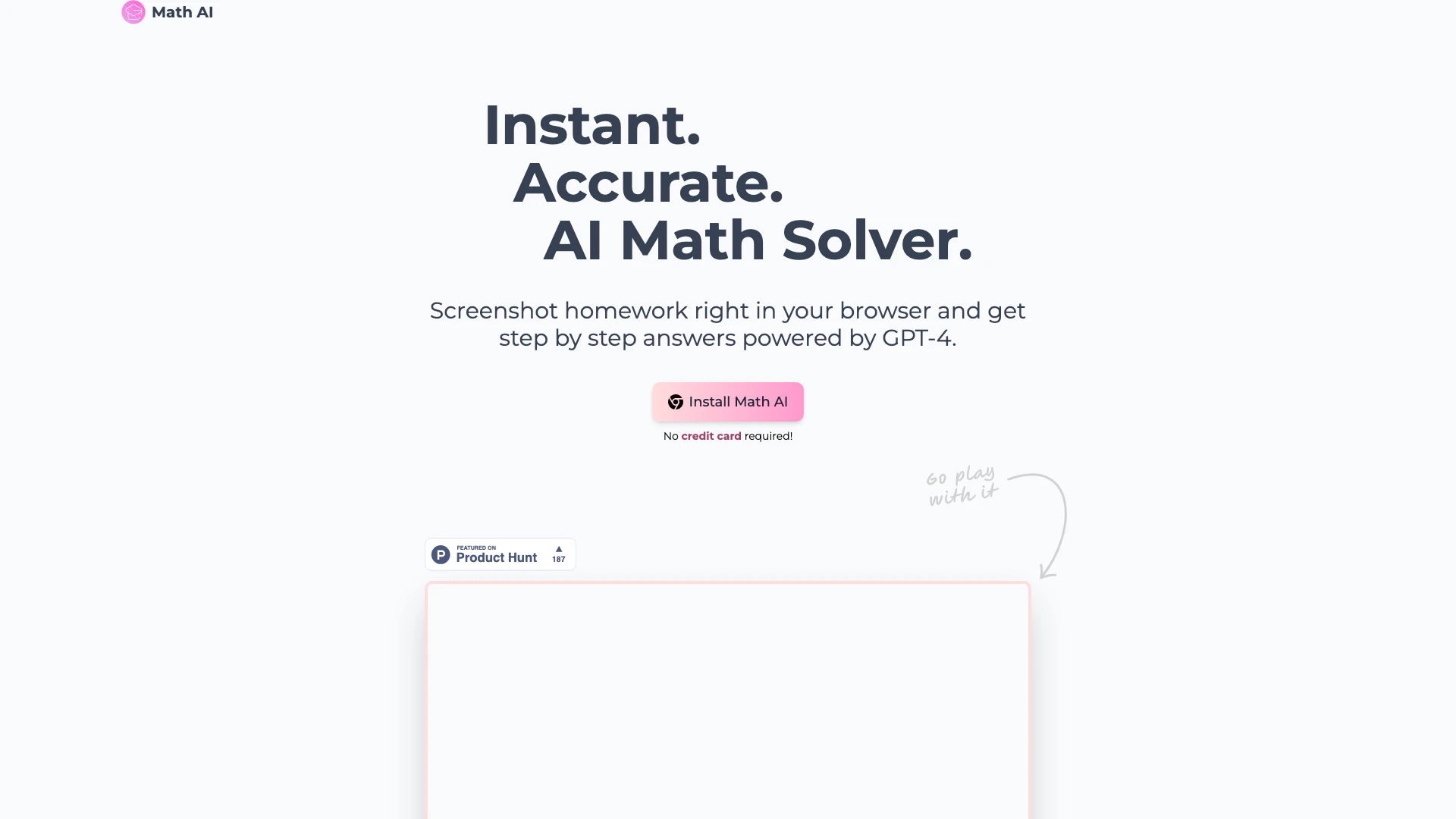 Mathai is an innovative AI-powered[1] math solver[2] that allows users to solve mathematical problems instantly right in their browser. Utilizing the advanced capabilities of GPT-4 Vision[3], Mathai enables users to take screenshots of their math problems and receive detailed, step-by-step solutions. This tool is designed to simplify the process of learning and understanding mathematics, making it accessible to a wide range of users, from students to professionals.