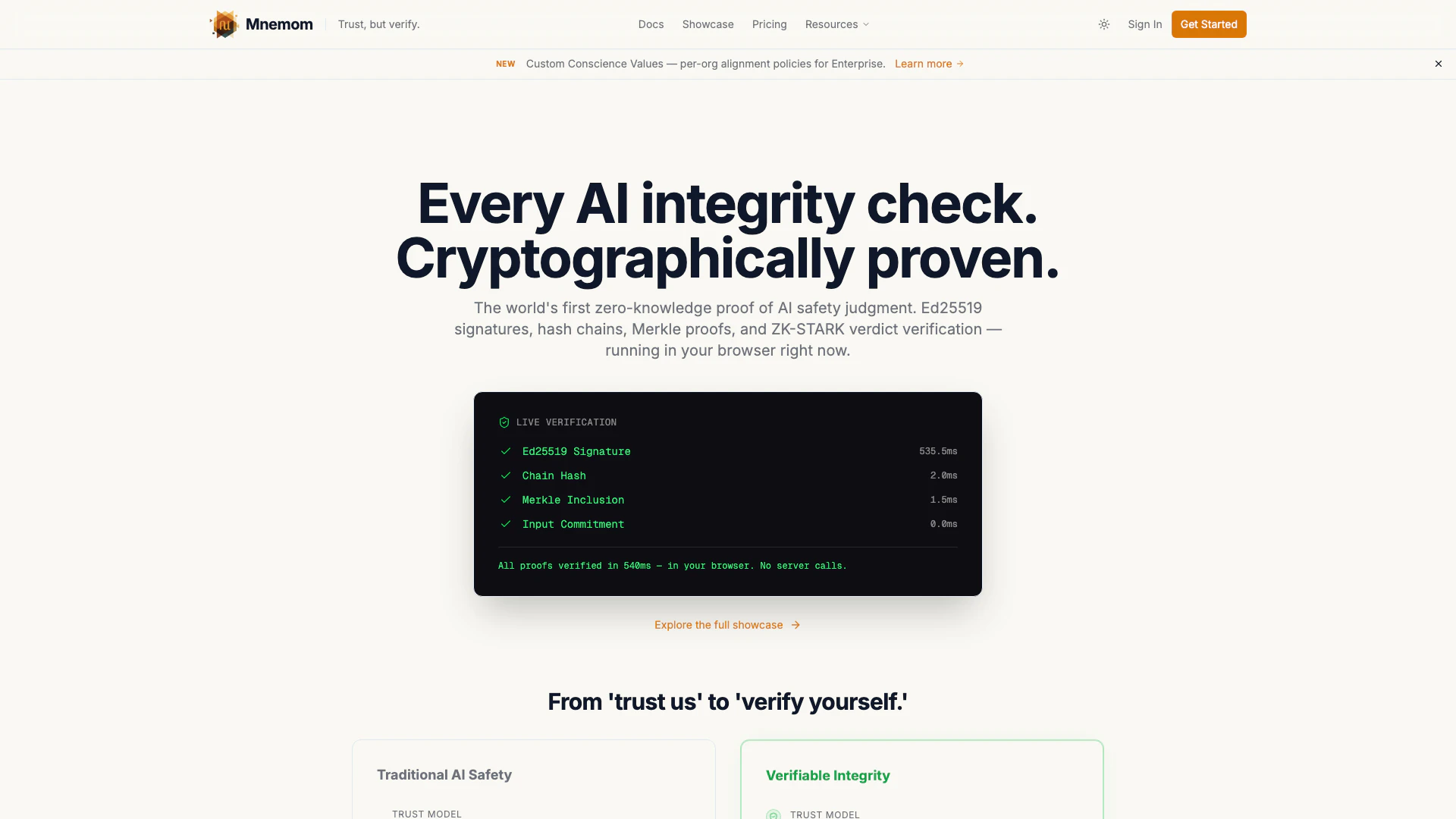 - Strong Alignment Assurance: By providing cryptographic proof of AI alignment, Mnemomai helps ensure that AI agents operate as intended, reducing risks of misalignment.