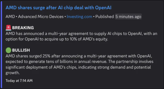 - Real-time Stock Alerts: Receive immediate notifications about market-moving news and sentiment analysis via Discord.