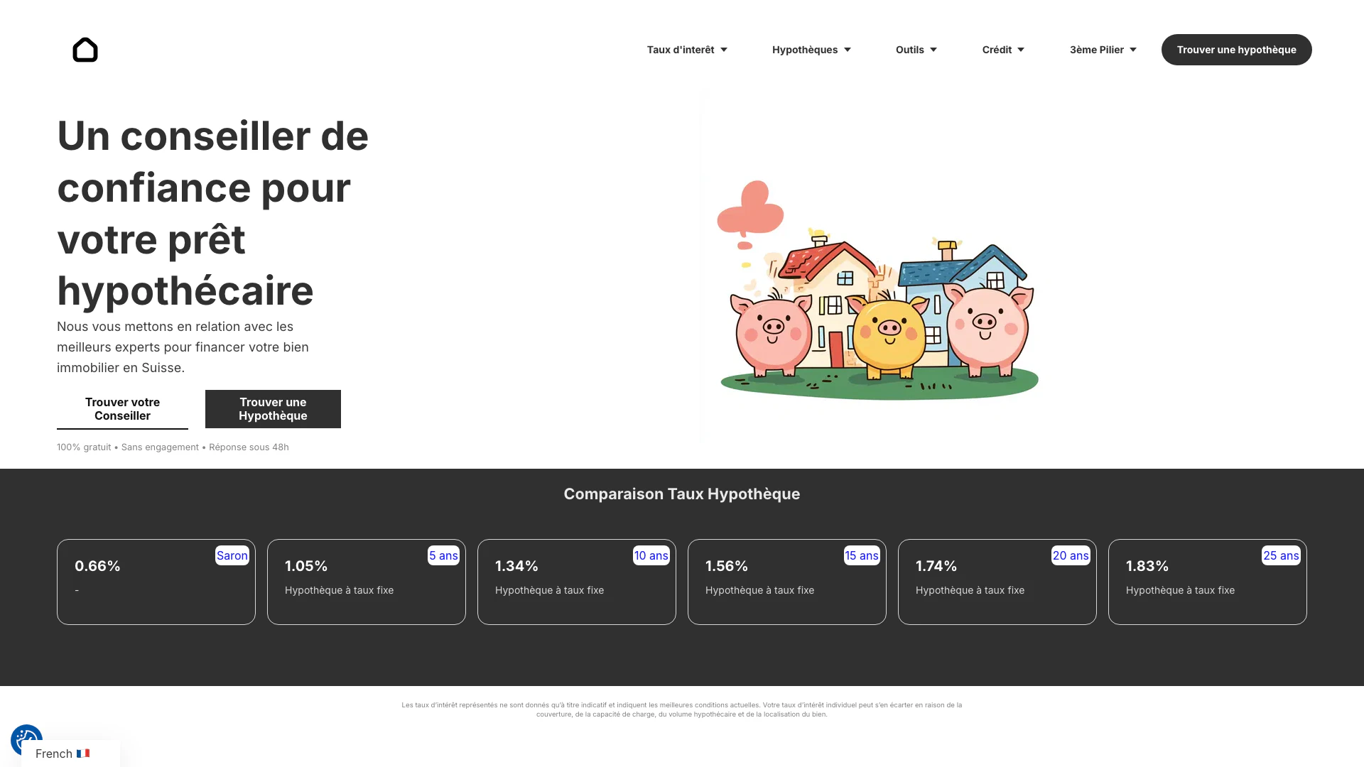 For the latest pricing, please visit this link: https://www.neo-hypotheque.ch/taux-hypothecaires-comparaison/