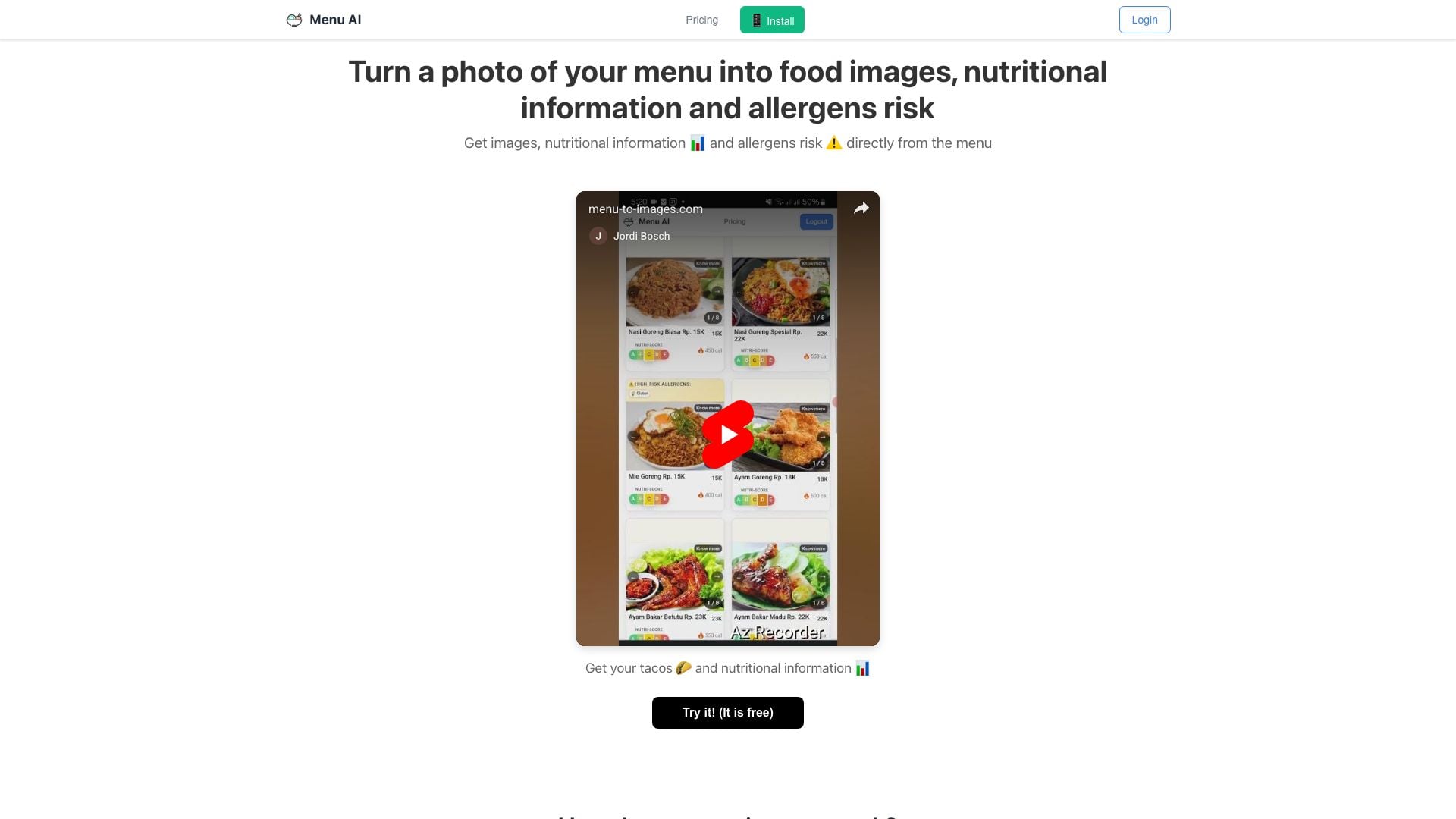 This application lets you scan a menu in any restaurant and get it translated into nice images, nutritional information (calories, nutri score, vegetarian, vegan filters) risk of 14 allergens (gluten, crustaceans, eggs, fish, peanuts, soybeans, milk, nuts, celery, mustard, sesame, sulphites, lupin, molluscs).