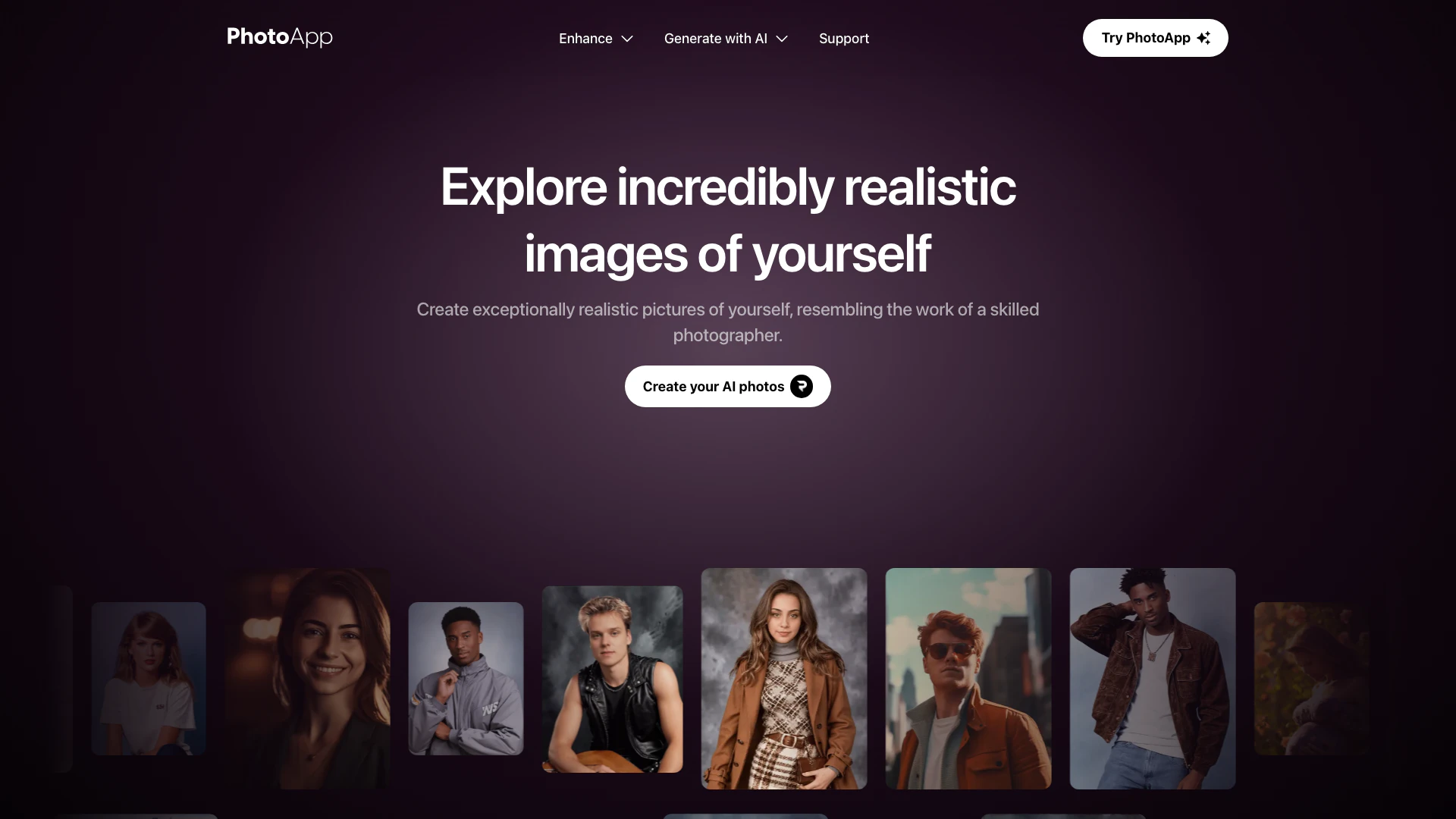 Photoapp is an innovative AI-powered[1] photo generation[2] tool designed to create exceptionally realistic images of individuals, resembling the work of a skilled photographer. This tool enables users to enhance their visual content effortlessly, whether for personal use or professional needs. With Photoapp, you can generate a variety of stunning portraits in just minutes, using your own images to train the AI. The core value of Photoapp lies in its ability to deliver high-quality, customized photos[3] that capture the best version of yourself for any occasion.