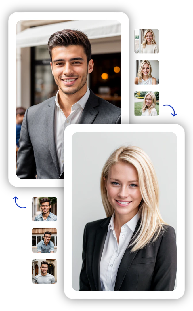 Simply upload a few selfies and our AI will generate professional headshots for you. You can also use our AI headshot generator to create headshots for your LinkedIn profile.