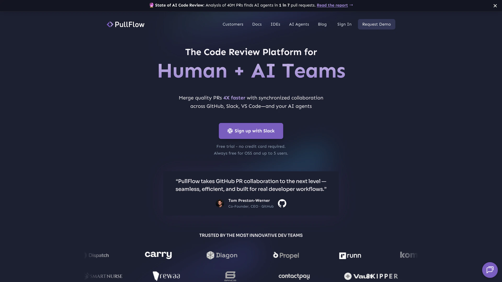 - Faster Code Reviews: PullFlow enables teams to merge quality pull requests 4X faster by synchronizing conversations across GitHub, Slack, and VS Code.