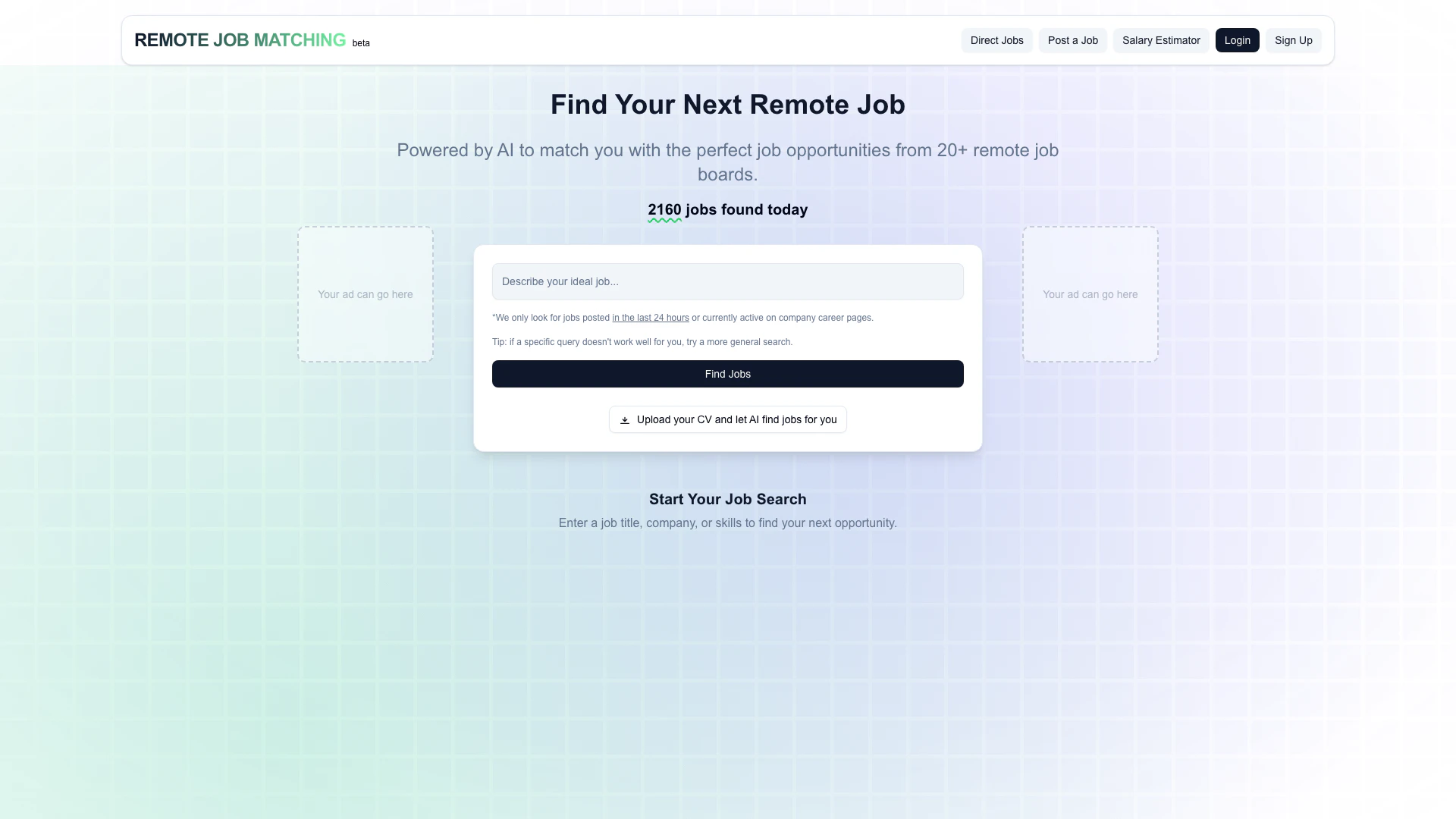 If you're on a free tier you get results from a standard search across several remote job boards that allow for such a search technically. If you're on a paid tier we use AI to match your query with remote jobs from at least 3x more remote job boards (new ones are added constantly). If you upload your CV we extract your skills and expertise and match that with job offers posted on those job boards.