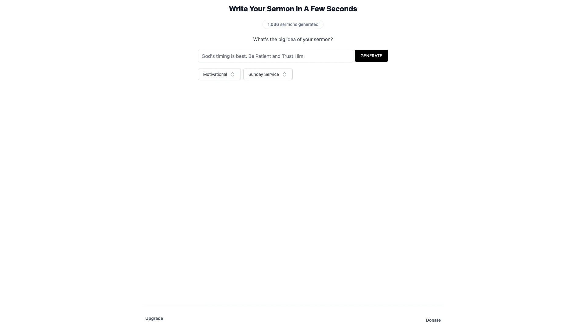 - Click the 'GENERATE' button to initiate the sermon creation process.