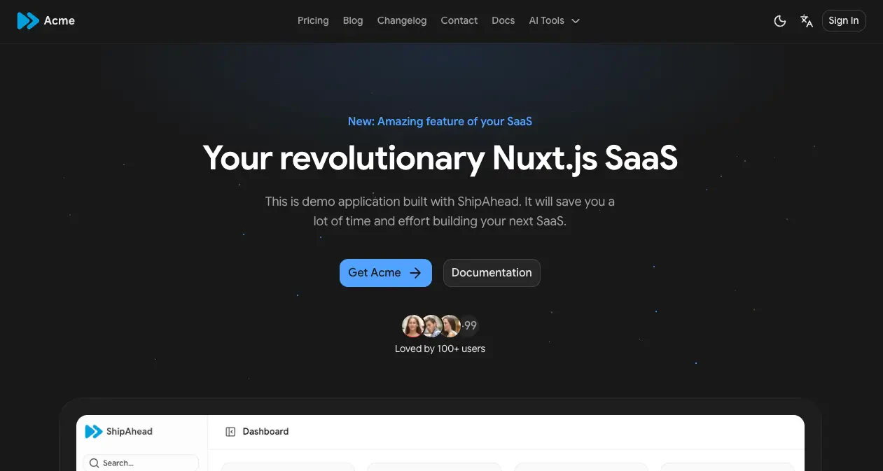 - Ready-to-Ship Nuxt Boilerplate: ShipAhead provides a fully functional Nuxt boilerplate, allowing developers to skip setup and focus on building their product.