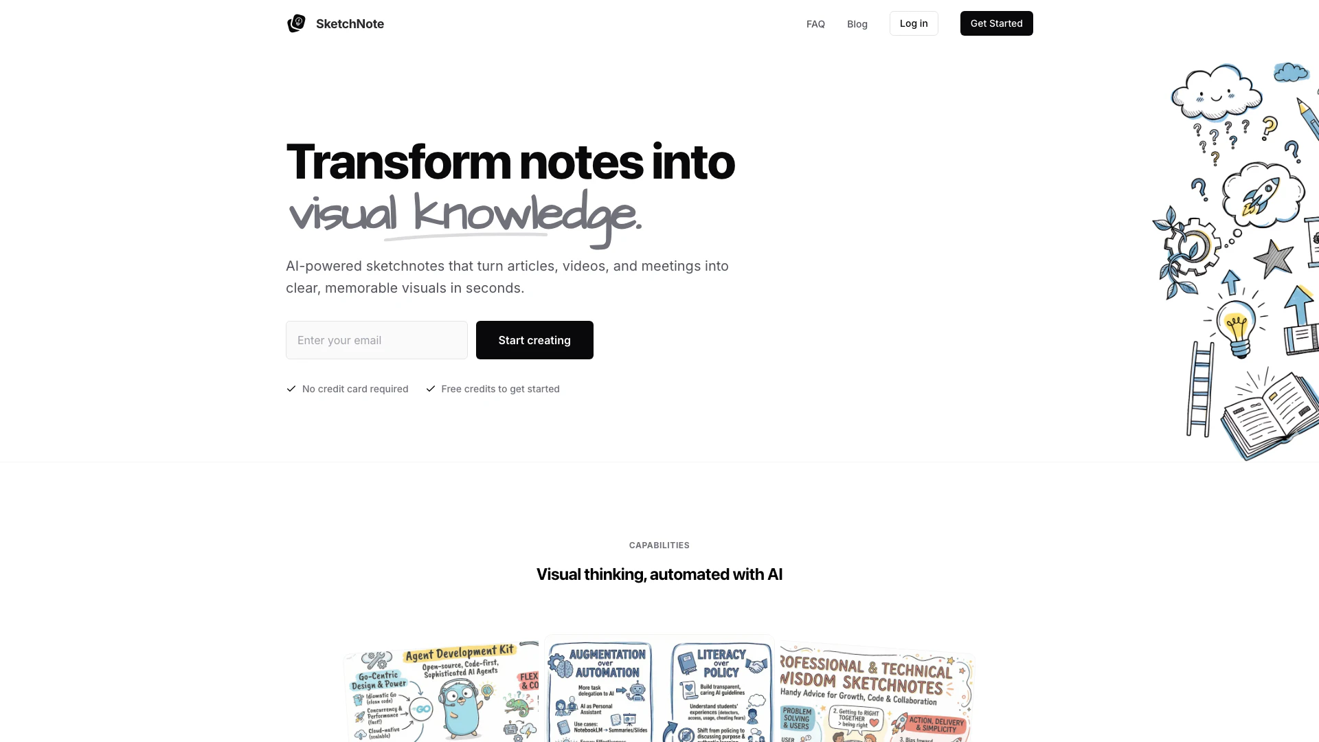 - AI-powered generation of sketchnotes from text, articles, and videos.
